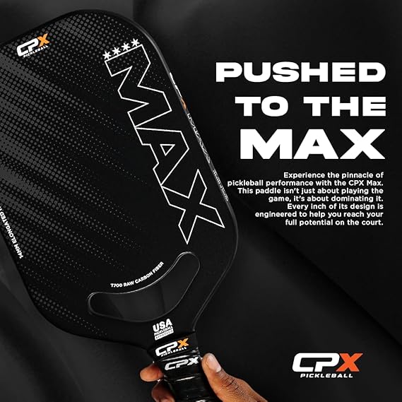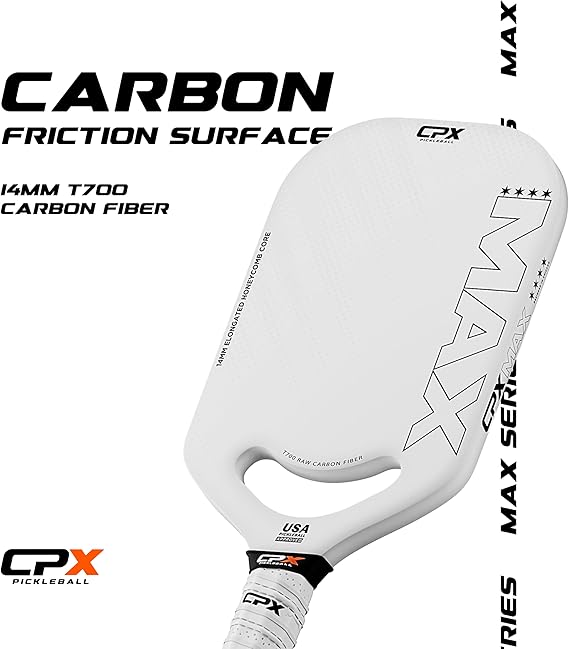 CPX MAX Series Raw Carbon Fiber T700 Pickleball Elongated Paddle Racket - Professional Grade, 14mm Core Thickness, Comfortable Tennis Style Grip - Durable Pickleball Paddle Designed in Chicago, USA